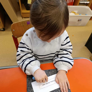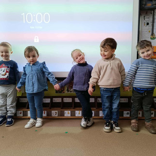 Nous avons choisi les couleurs des vêtements des personnages principaux et avons peint toutes les images de notre livre. Nous avons picoté les textes afin de les coller sur la page correspondante. Madame nous lisait un texte et nous devions retrouver la bonne image. Nous avons prêté notre voix pour donner vie à notre livre et, enfin, nous avons même rejoué les différentes scènes du livre. C'était vraiment rigolo !