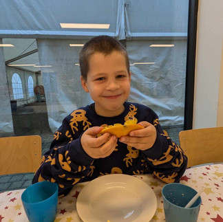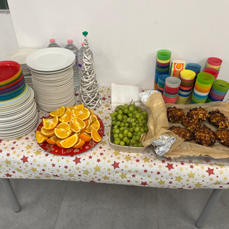 Cette année, nous avons organisé un petit déjeuner de Noël pour tous les enfants de l’école. Celui-ci a débuté dans une ambiance festive. Le réfectoire s'est transformé en un lieu chaleureux où les tables étaient dressées avec soin. Un buffet varié attendait les enfants : pain, céréales, confiture, pâte à tartiner, jambon , fromage, yaourt, raisins et oranges.
