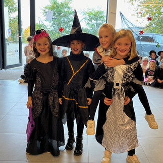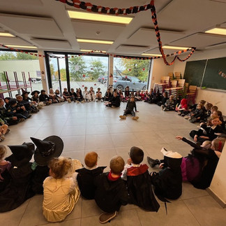 Ce vendredi, lâĂ©cole a pris des airs de mystĂšre et de magie pour cĂ©lĂ©brer Halloween avant le dĂ©but des congĂ©s dâautomne ! Entre rires, danses et dĂ©guisements effrayants, petits et grands ont partagĂ© une journĂ©e inoubliable.