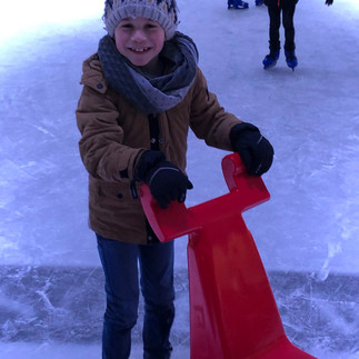 En janvier, tous les enfants de primaire se sont rendus à la patinoire de La Roche-en-Ardenne. Monsieur Denis leur a appris les mouvements de base, les a promenés en luge... Un vrai moment de plaisir!