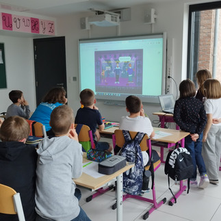 Dans le cadre du cours de numérique, les élèves de 3,4,5 et 6e années se sont groupés pour créer des histoires animées à l'aide de l'application "scratch".